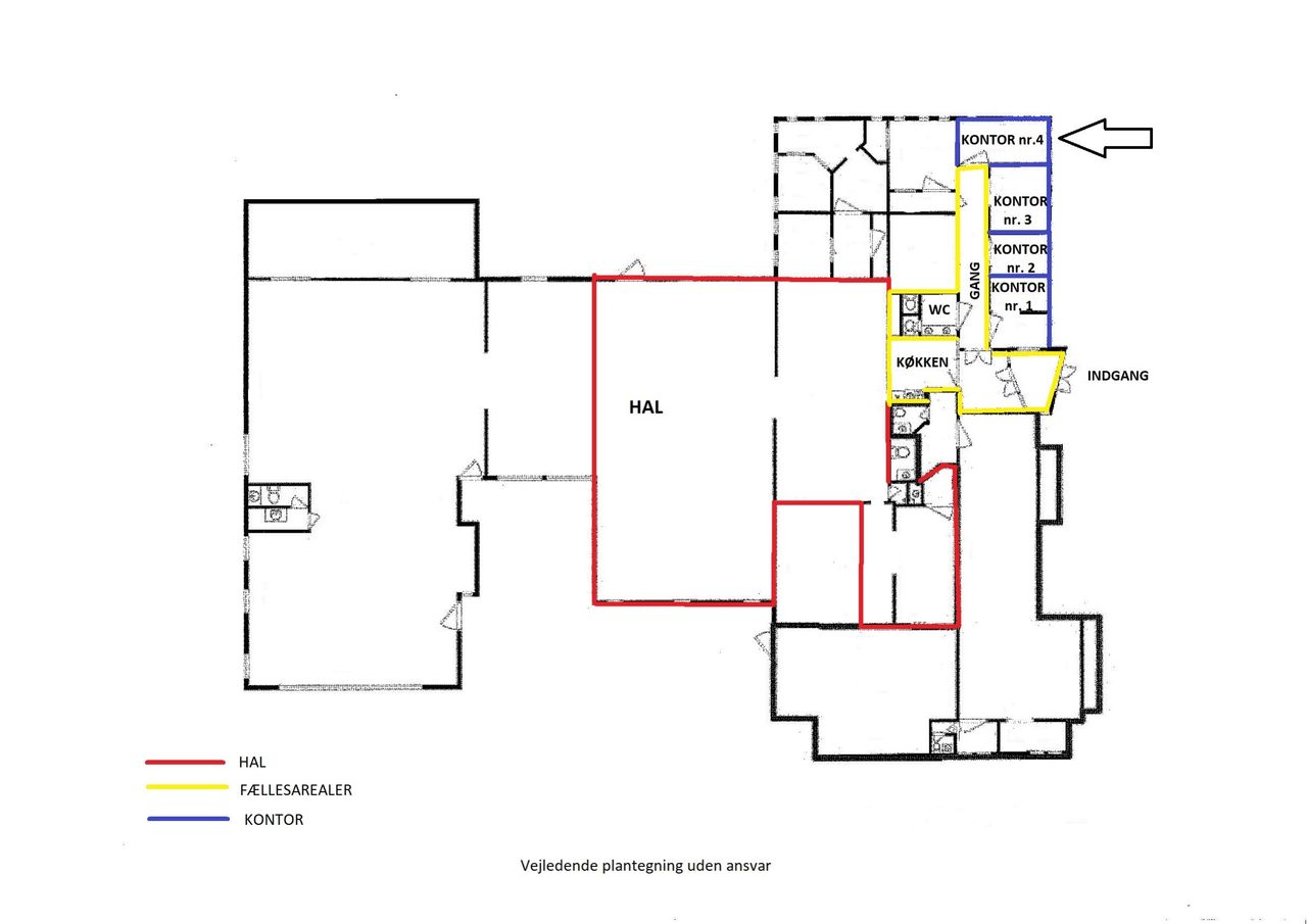 Såfremt ønsket er at have mere plads, så har bygningen flere kontorer der kan lejes, eller en stor hal på