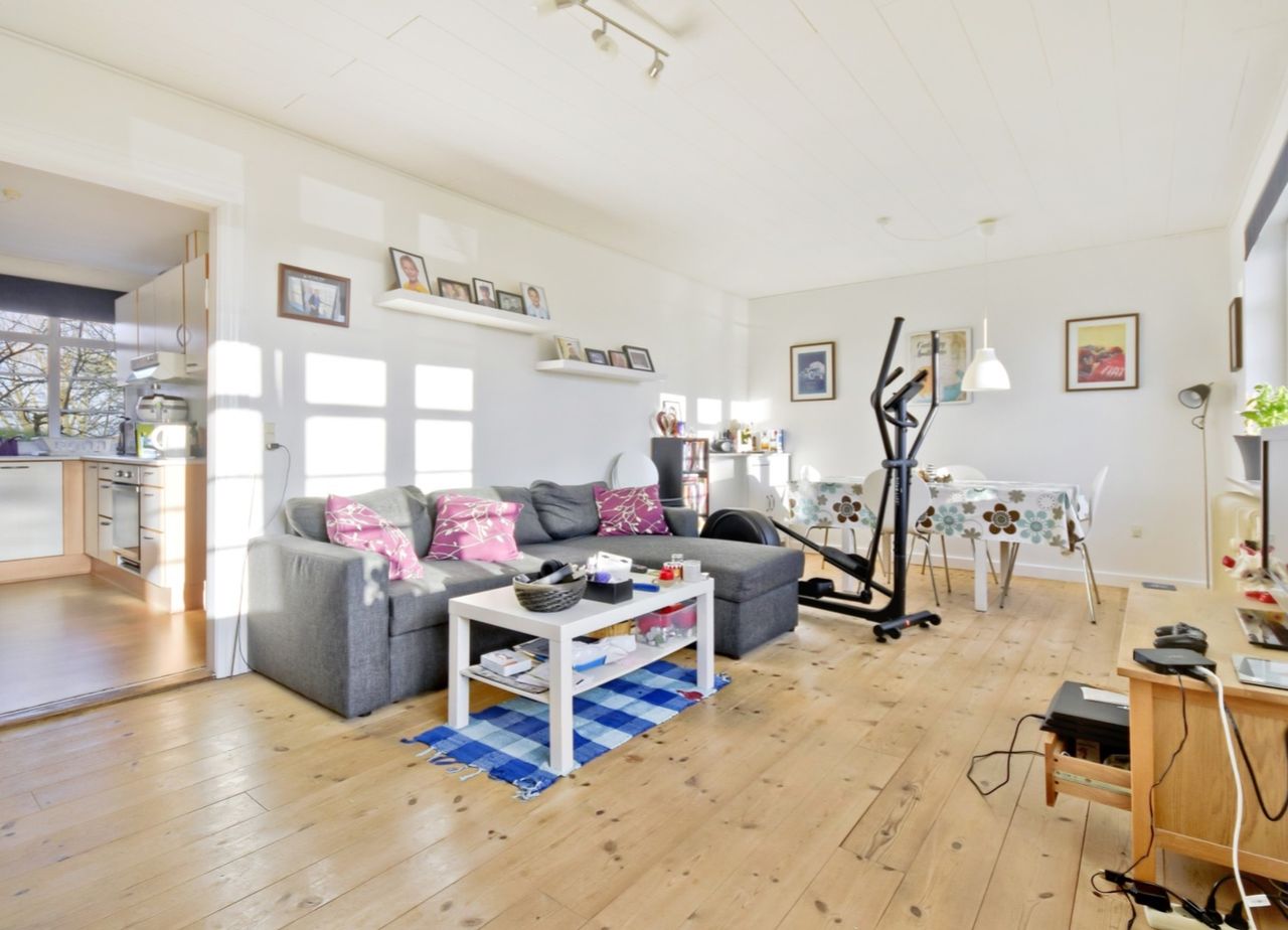 Indkørslen til huset går bagom ejendommen, hvilket giver en praktisk daglig indgang gennem bryggerset. Bag huset finder du en dejlig have med frugttræer, en hyggelig træterrasse og bag indgangen er med hjemmebar – ideelt til sommerens fester og afslapning.