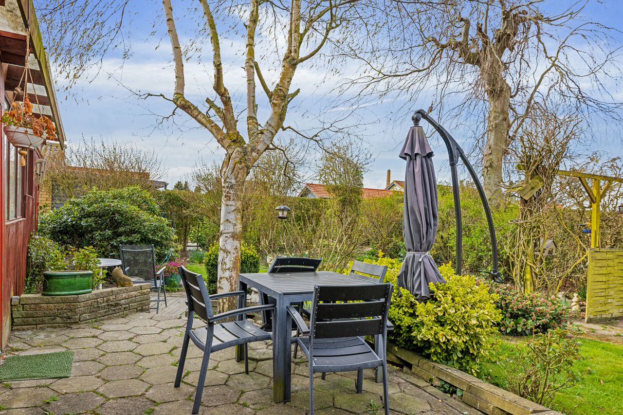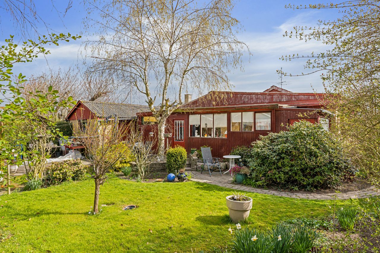Til ejendommen hører desuden en garage og en overskuelig have med mulighed for både leg og afslapning.