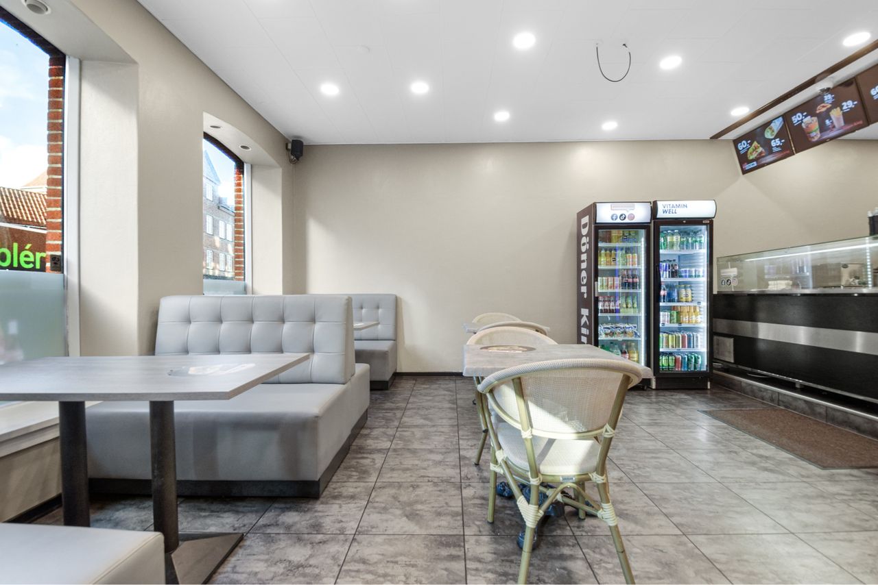 butikslokalet er der et personalerum samt toiletfaciliteter. Lokalerne fremstår flotte og med grålige,