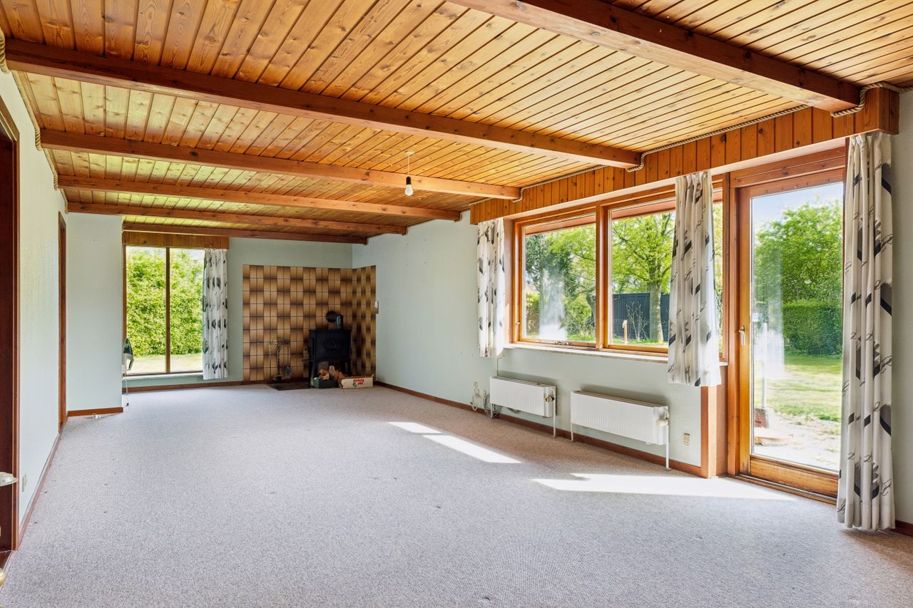 Her er hjemmet, hvor I ikke skal gå på kompromis. I får et gedigent og ærligt hus i et plan, med en optimal planløsning, et rummelig lade og en smuk have. Der er plads til alt det, I holder af.